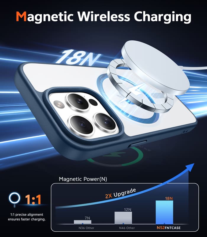 • Strong Magnetic Attraction: Compatible with Magnetic chargers and other Qi Wireless chargers without signal influence. The iPhone 13 Pro magnetic case has built-in 38 super N52 magnets. Its magnetic attraction reaches 2400 gf