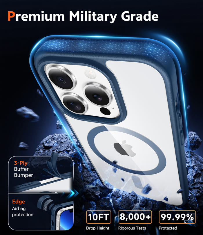 • 10FT Military Grade Protection: Passed Military Drop Tested up to 10 FT. This iPhone 13 Pro clear case backplane is made with rigid polycarbonate and flexible shockproof TPU bumpers around the edge and features 4 built-in corner Airbags to absorb impact
