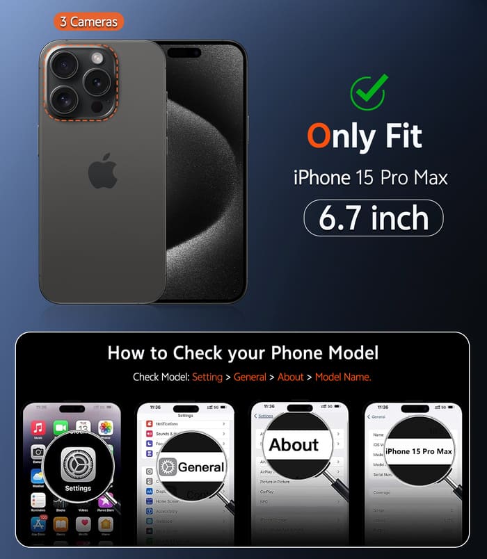 • Displayschutz aus gehärtetem Glas: iPhone 15 Pro Max-Telefonhülle mit 1X-Displayschutz, sie kann die ursprüngliche Berührungsempfindlichkeit und HD-Klarheit bewahren und bietet gleichzeitig außergewöhnlichen Schutz vor Kratzern und Stürzen