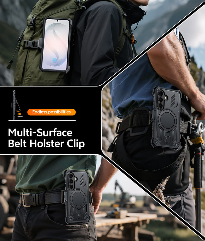 360° Rotatable Belt-Clip Holster: This Galaxy S26 case features a detachable, 360° rotatable belt clip. Adjust it to your perfect angle for convenient, hands-free carrying. The holster offers full protection, making it ideal for outdoor work, sports, camping, and travel.