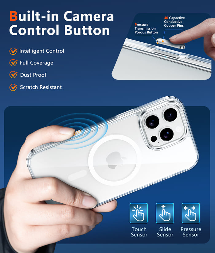 • Kamerasteuerungs-Aufnahmetaste: Integrierte Kamerasteuerungs-Aufnahmetaste, nahtlos integriert mit den Funktionen der Kamerasteuerungs-Aufnahmetaste des iPhone 16 Pro, bequemerer und schnellerer Zugriff auf die Kamerasteuerungs-Aufnahmefunktionen