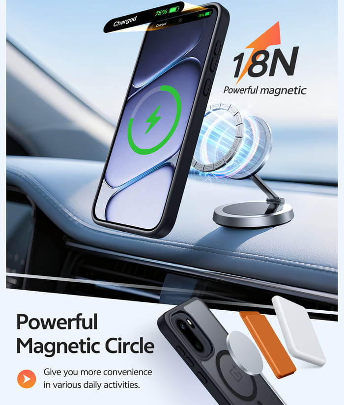 • Strong Magnetic Attraction: Compatible with Magnetic chargers and other Qi Wireless chargers without signal interference. The OnePlus 15R phone case has 38 super N52 magnets built in. Its magnetic attraction reaches 2400 gf, which is almost 7X stronger than ordinary, so it won't fall off, no matter how it shakes while charging.