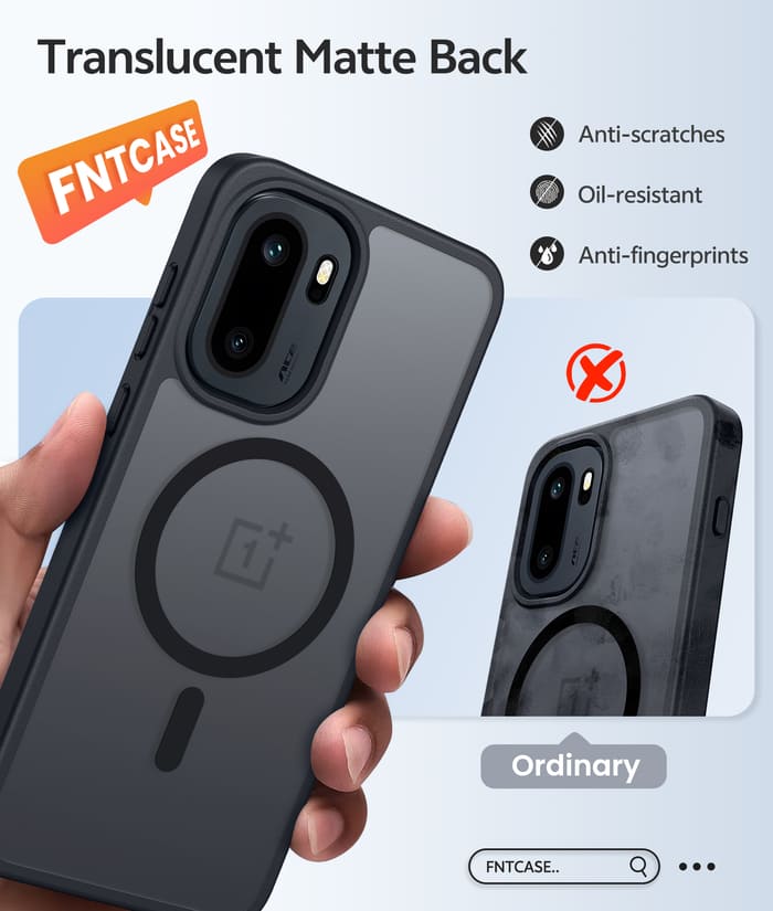 FNTCASE for OnePlus 15R Phone Case: Magnetic Translucent Matte Shockproof Slim Phone Cover - Military Grade Drop Proof Hard Back Anti-Fingerprint Protective Case