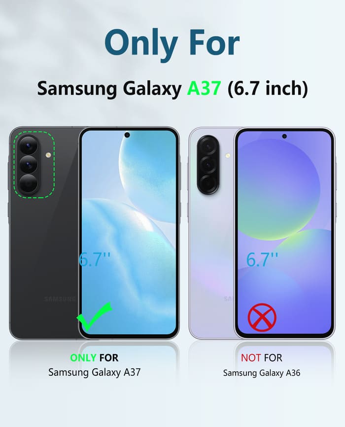 Only for the Samsung Galaxy A37, the case has a Dual-layer sturdy protection structure, with a built-in Kickstand and screen protector. Military-grade drop-tested, Dropproof, Impact-resistant mobile phone case.