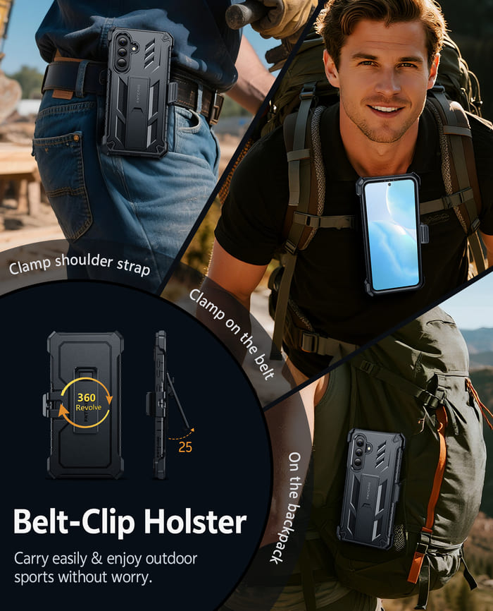 • Versatile Holster Clip: With the detachable, rotatable holster clip, you can carry your Phone vertically, horizontally, or at any angle, or use it as a stand to provide extra versatility and convenience. Ideal for everyday use, hiking, or sports activities