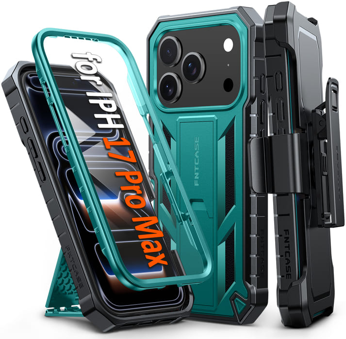 iPhone 17 Pro Max Case: Military Grade Rugged Cell Phone Cover with Kickstand and Belt Clip Holster