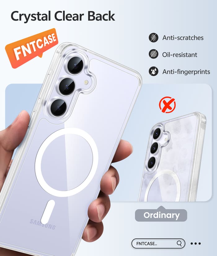 • Yellow Resistance: This Samsung Galaxy S25 FE phone case is made of anti-yellowing PC and TPU materials, making the Samsung Galaxy S25 FE case transparent for long periods and effectively resists sweat and stains, clearly showing the original color of your phone