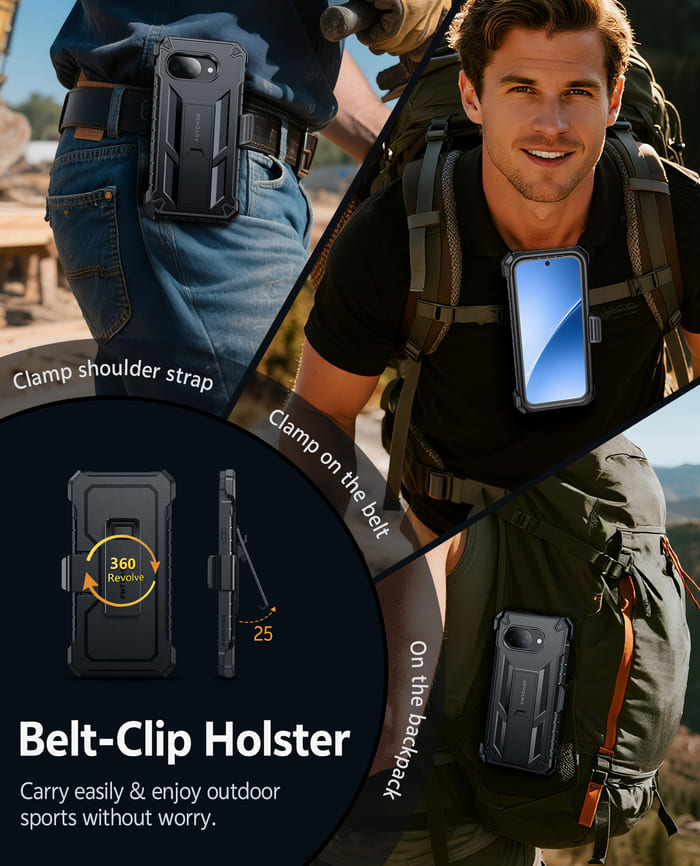 • Versatile Holster Clip: With the detachable, rotatable holster clip, you can carry your Phone vertically, horizontally, or at any angle, or use it as a stand to provide extra versatility and convenience. Ideal for everyday use, hiking, or sports activities