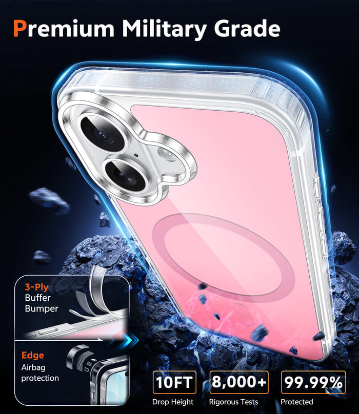 • 10FT Military Grade Protection: Passed Military Drop Tested up to 10 FT. This iPhone 17 clear case backplane is made with rigid polycarbonate and flexible shockproof TPU bumpers around the edge and features 4 built-in corner Airbags to absorb impact. The rectangular back panel perfectly aligns with the modular design concept for the iPhone