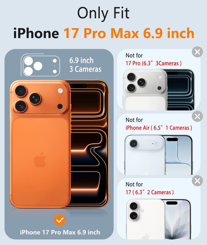 • Camera Protection: Unique, meticulously designed, integrated lens cover protection. It prevents your iPhone 17 Pro camera from any dust, shatter, or scratch. And the same camera cover color matches with phone case, which looks more uniform