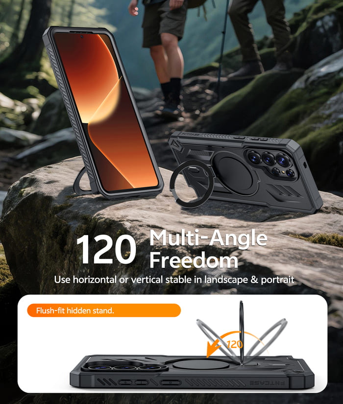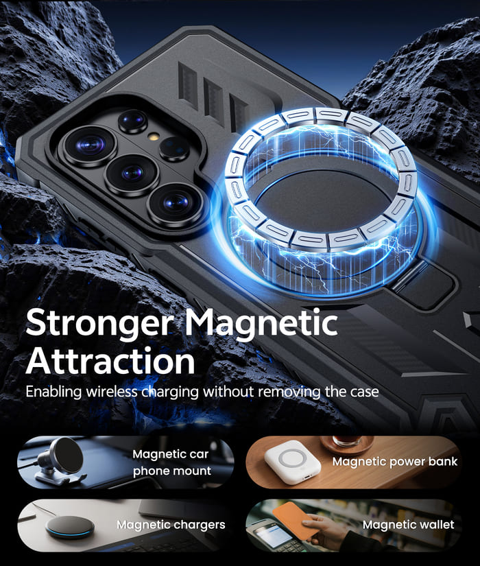 Built-In Magnetic Ring Kickstand: Featuring a magnetic ring stand design that enables wireless charging without removing the case. The Galaxy S26 Ultra phone case with stand works perfectly in both vertical and horizontal positions, making it convenient for activities such as reading, watching movies, playing games, browsing the web, and face-to-face chatting.