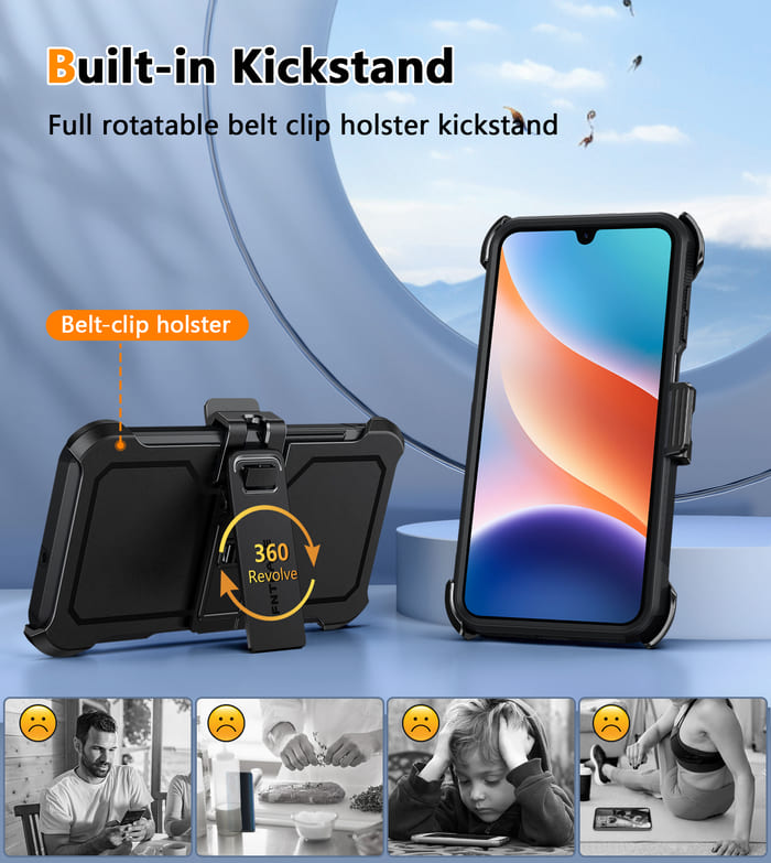 • 360 Rotatable Belt-Clip: Samsung Galaxy A17 5G Case provides a 360 rotatable belt clip, you can conveniently put your phone on your belt or your backpack, and the belt clip also firmly holds your mobile phone, allowing you to work or walk with confidence. This case can protect your phone from damage when working outdoors, sports, camping, or traveling. Make it more convenient for you
