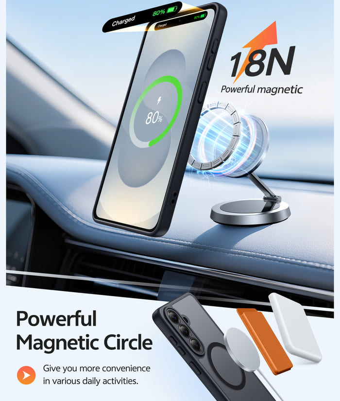 • Strong Magnetic Charging: Fit for Magnetic chargers and other Wireless chargers. This Samsung Galaxy S26 (6.3 inch) case has built-in 38 super N52 magnets. Its magnetic attraction reaches 2400 gf, which is almost 7X stronger; it won't fall off, no matter how it shakes when you are charging. Aligns perfectly with wireless power bank, wallets, car mounts, and wireless charging stand