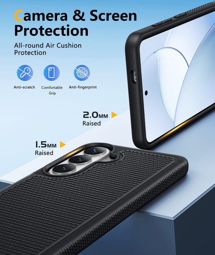 • Enhanced Camera Protect & Raised Bevel for Scratch Resistance: Each camera lens is 360 fully surrounded and protected. A 1.5mm (0.06 inch) lifted bezel on the screen and 2.0mm (0.08 inch) on the camera lens can prevent daily scratches when you put your cell phone face down.