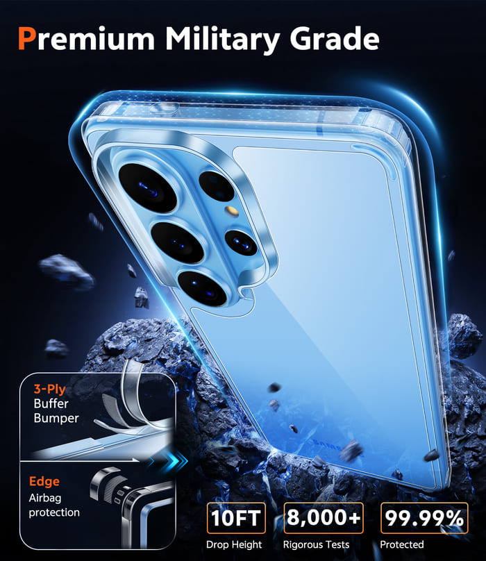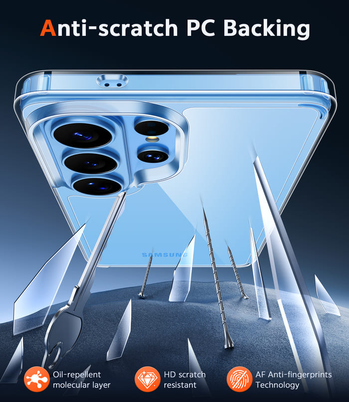 • 【Crystal Clear & Never Yellow】Using high-grade Bayer's ultra-clear TPU and PC material, allowing you to admire the original sublime beauty of Samsung Galaxy S26 Ultra without getting oily when used. The Nano antioxidant layer effectively resists stains and sweat, keeping the case clear like a diamond longer than others