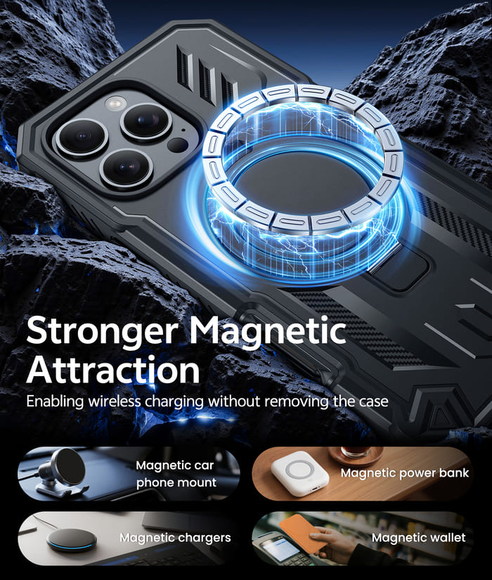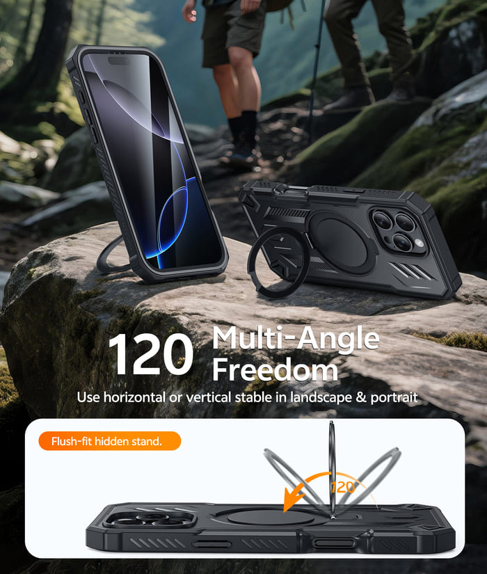 Built-in Magnetic Ring Kickstand: Equipped with a magnetic ring stand design, enabling wireless charging without removing the case. The iPhone 16 Pro Max Case with a stand works perfectly both in vertical and horizontal positions. Convenient for reading, watching movies, playing games, browsing the web, and face-to-face chatting with friends.
