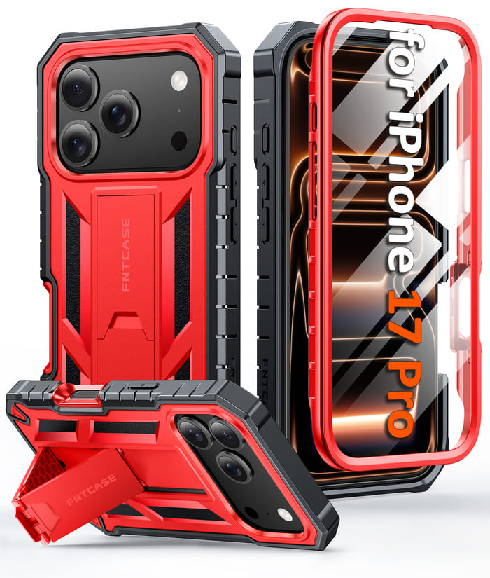 FNTCASE iPhone 17 Pro 6.3インチ用電話ケース:ミリタリーグレードの耐衝撃性、スクリーンプロテクターとキックスタンド内蔵