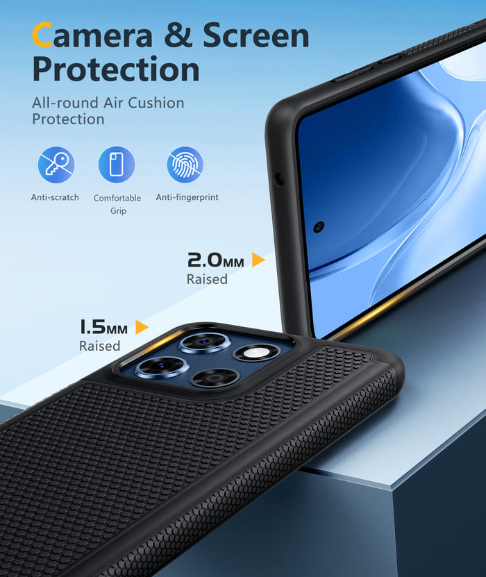 Enhanced Camera Protection & Raised Bevel for Scratch Resistance: Each camera lens is 360 fully surrounded and protected. 1.5mm lifted bezel on screen and 2.0mm on camera lens can prevent daily scratches when you put the cellphone face down