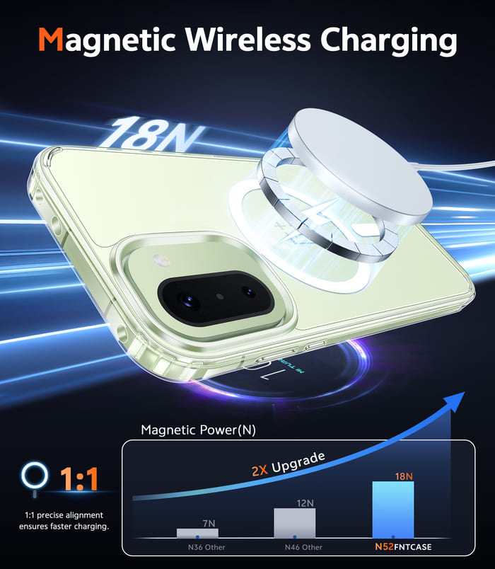 Strong Magnetic: The built-in powerful N52 magnets with 2400 gf of holding force make it easy to attach all kinds of Magnetic Charging accessories like wireless car chargers, wireless chargers, battery packs, etc. Even if you vigorously shake your phone, it won't easily fall off