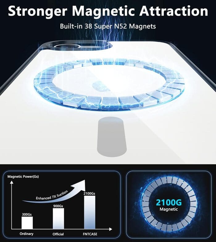 • Strong Magnetic Attraction: Compatible with Magnetic chargers and other Qi Wireless chargers without signal interference. Our iPhone SE 4/ SE 2025/ 16E case has 38 super N52 magnets built in. Its magnetic attraction reaches 2400 gf, which is almost 7X stronger than ordinary, so it won't fall off no matter how it shakes while charging.