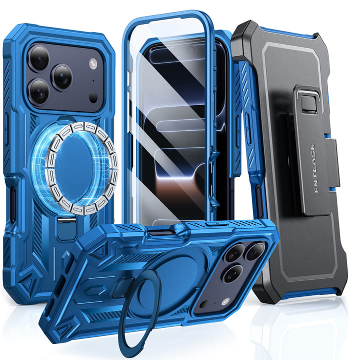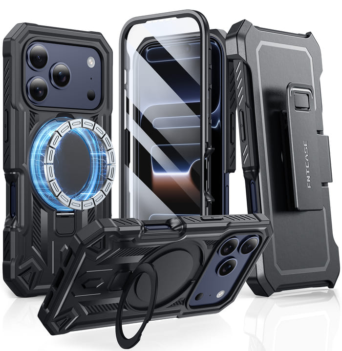 FNTCASE for iPhone 17 Pro Case with Ring Holder Magnetic Kickstand Military Grade Shockproof Protective Rugged Cell Phone Cover with Belt Clip Holster