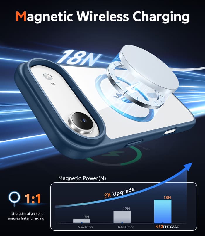 • Strong Magnetic Attraction: Compatible with Magnetic chargers and other Qi Wireless chargers without signal influence. The iPhone Air magnetic case has built-in 38 super N52 magnets. Its magnetic attraction reaches 2400 gf