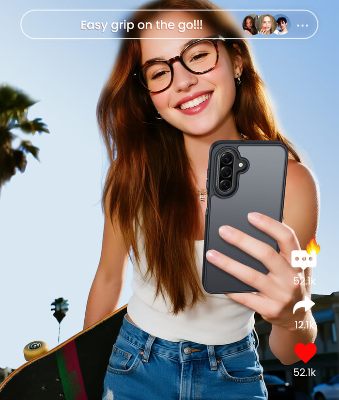 • Matte Texture & Superior Feel: The Samsung Galaxy A16/A17 5G 6.7-inch phone case uses high-quality matte TPU and PC translucent material without covering the iPhone logo; The frosted surface provides a comfortable hand feel, and the nano-antioxidant layer can effectively prevent stains and scratches.