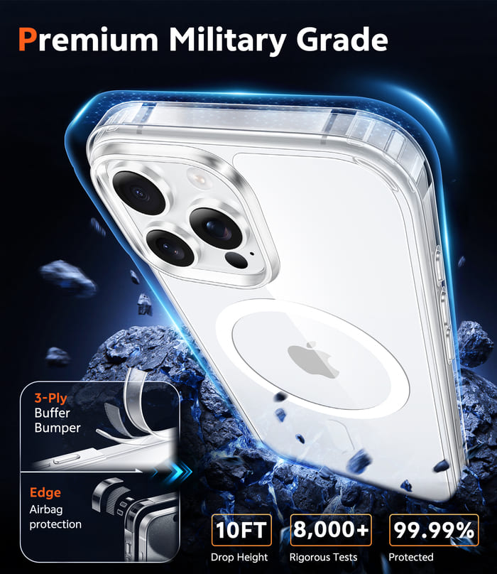 • 10FT Military Grade Protection: The case is designed through upgrades and is drop-tested. This iPhone 15 Pro magnetic case is designed with a soft frame and hard PC clear back cover, which provides shock protection and reduces damage even under a 10-foot drop